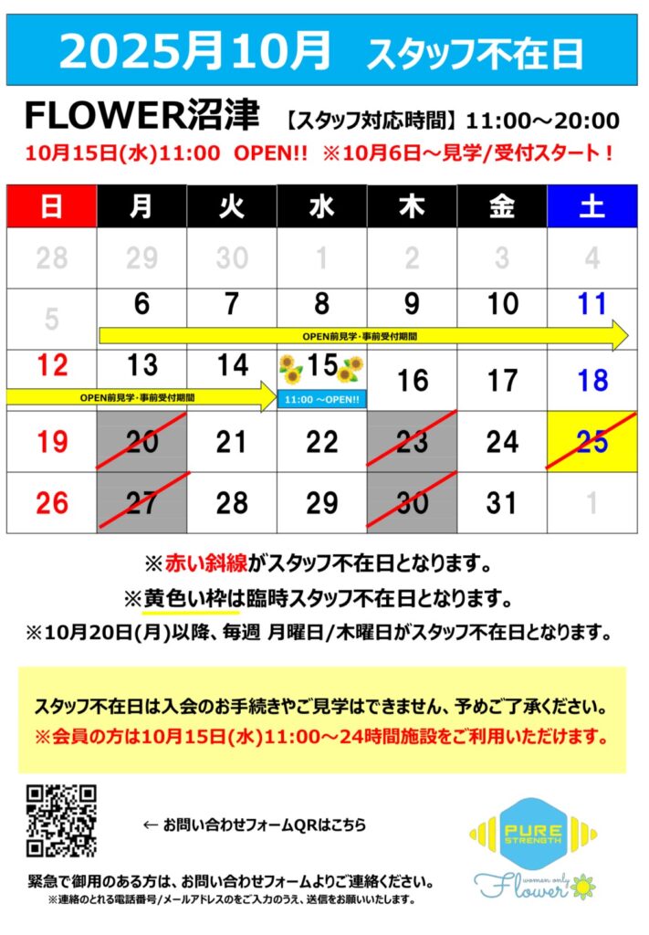 ※10月25日(土)は臨時スタッフ不在日です。
