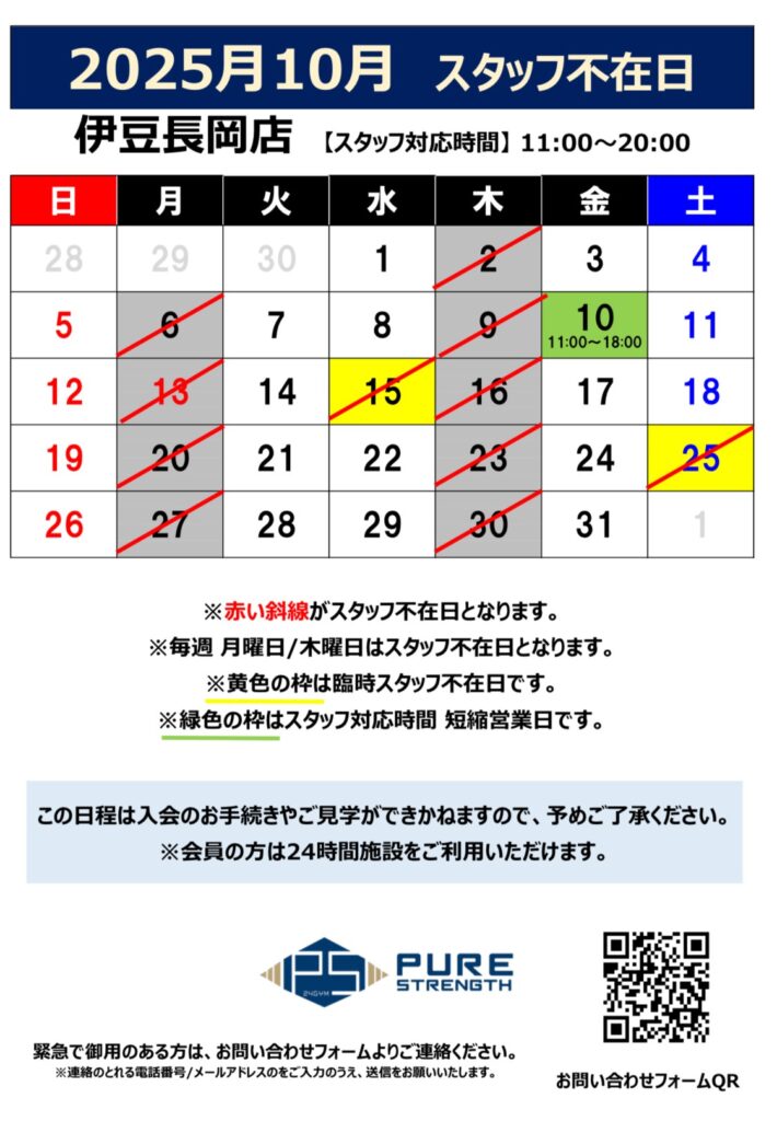 ※10月10日(金)は18:00~臨時でスタッフが不在となります。※10月15日(水)、10月25日(土)は臨時スタッフ不在日です。