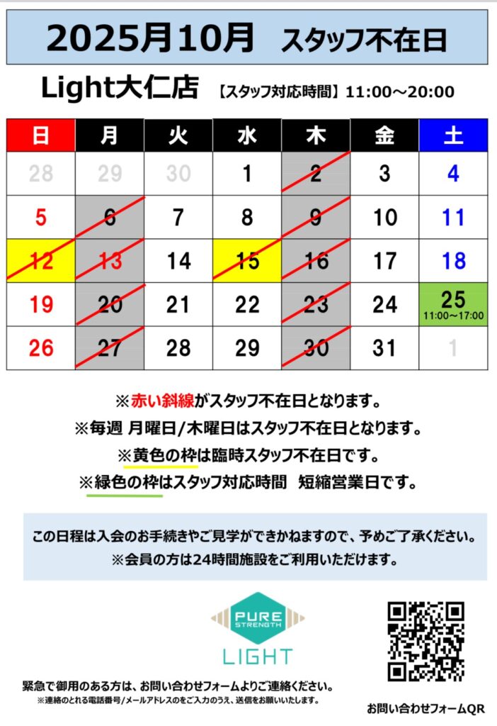 スタッフ不在日はお手続きやビジター利用ができかねますので、ご了承ください。